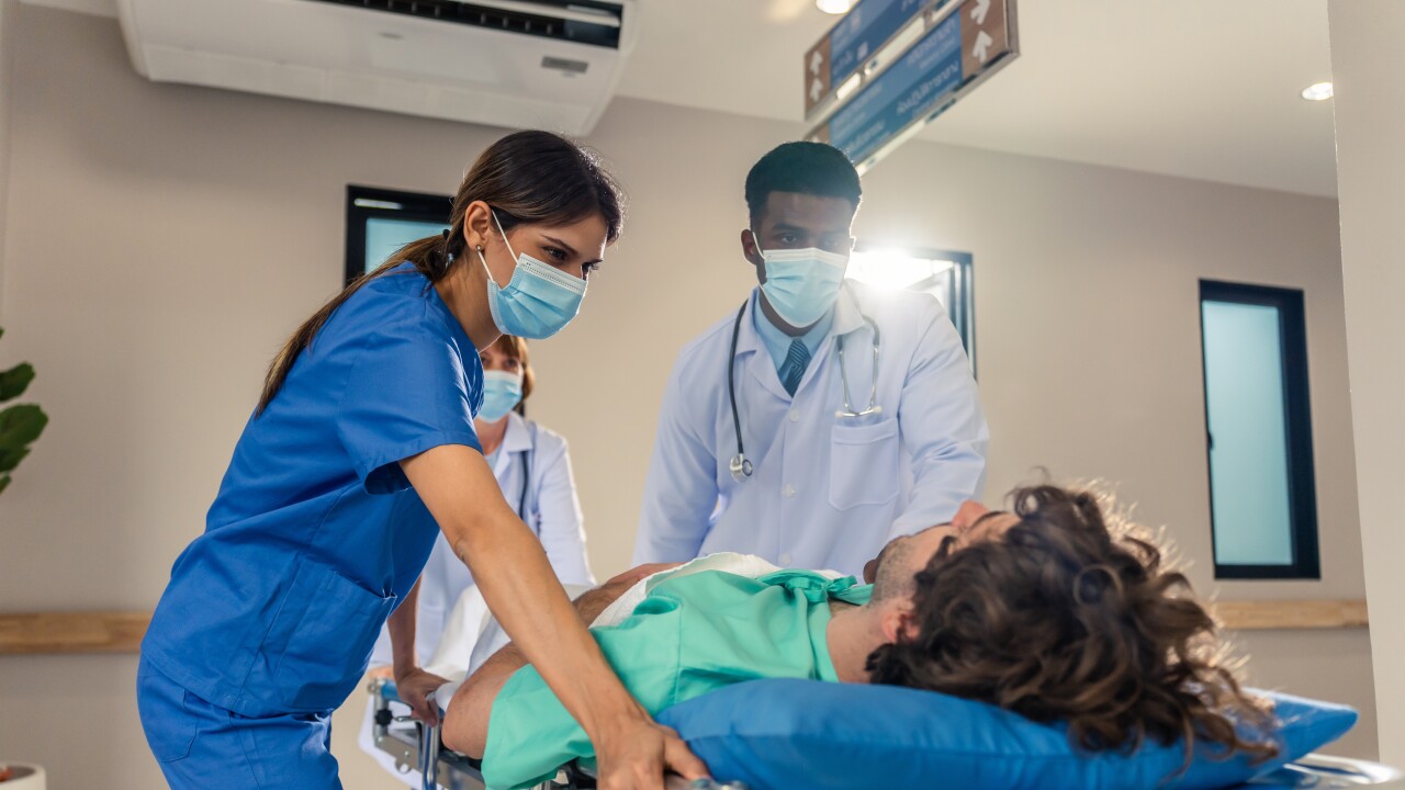 Group,Of,Diverse,Doctors,Moving,Seriously,Injured,Patient,In,Hospital.