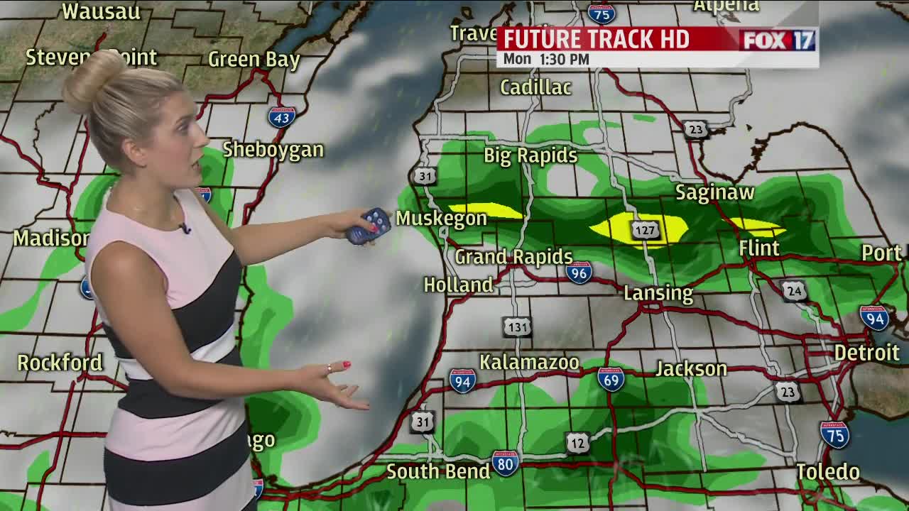 GRAND RAPIDS — West Michigan woke up to some sunshine Saturday morning but we will see increased cloud cover throughout the day leading into rain chances later this evening. We will have temperatures in the lower 80s with a bit of humidity. Plan on rain moving in from south to north with increased chances as we get closer and closer to sunshine .