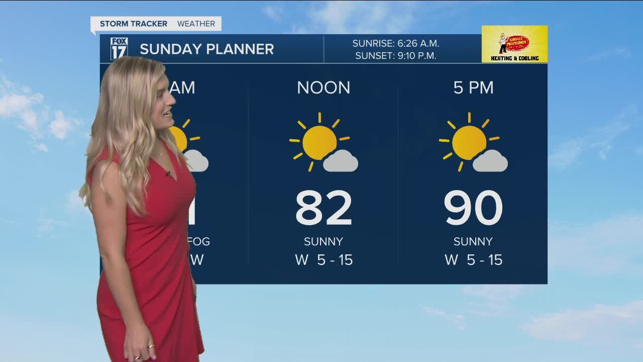 GRAND RAPIDS — A beautiful and hot Sunday ahead for West Michigan with a bit of humidity. Expect temperatures to push towards 90 degrees with lighter winds mostly out of the west. Lake Michigan will have calmer waves today as well allowing for a great place to cool off!