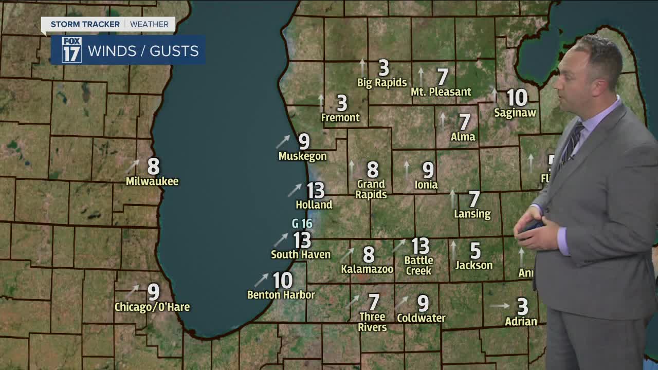 TONIGHT: Mostly cloudy. Still areas of mist and fog this evening especially north and east of Grand Rapids. Temps hold steady in the low 30s. Southwest winds at 6 to 12 mph.