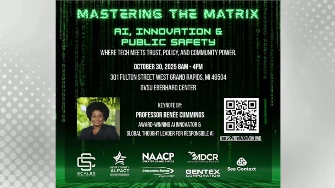 A first-of-its-kind summit, Mastering The Matrix: A.I., Innovation, and Public Safety, will be held at the Eberhard Center on Grand Valley State University's City Campus all day on October 30. It is free to attend and open to the public.