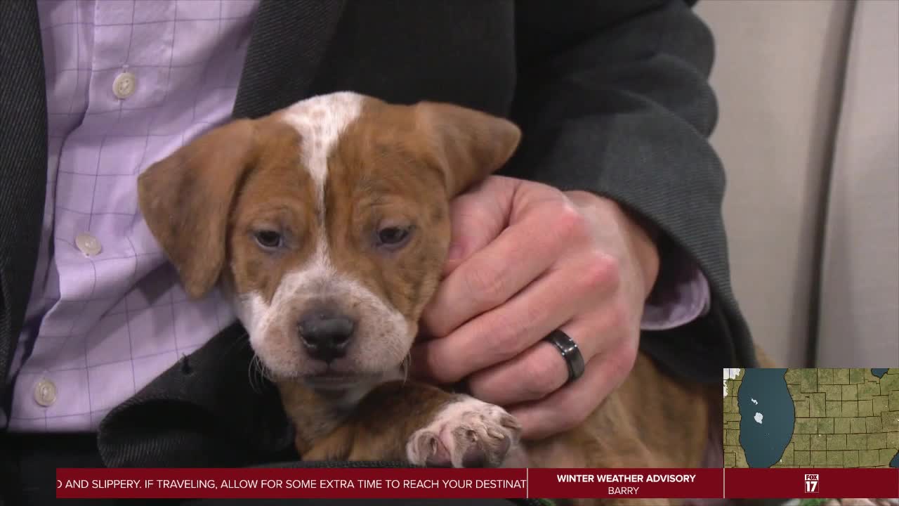 Pistachio is a two-month-old puppy that is one of eight littermates named after nuts! Don't let the sleepyhead fool you - he still has puppy energy and love to give! He's very much a cuddler and would be perfect in a family home.