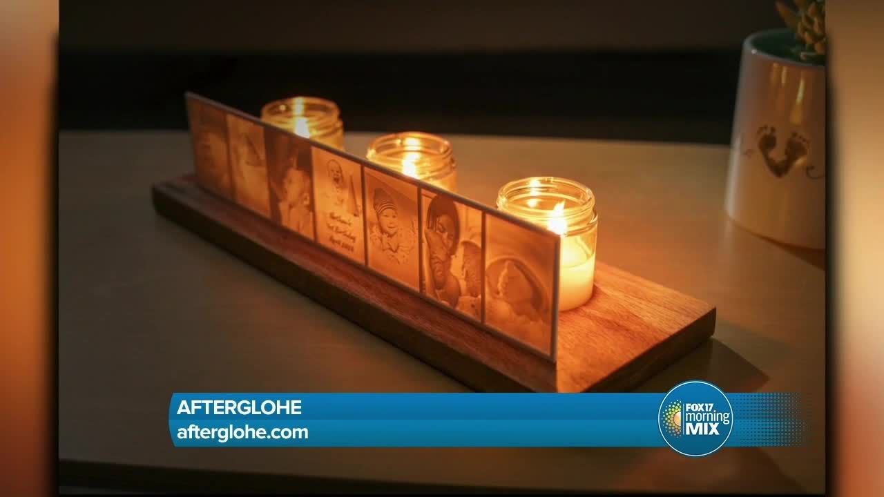 Afterglohe provides back-lit illuminated photographs created in a three-dimensional canvas that are custom-tailored to each customer's order. Customers can choose whichever photographs and whichever canvas style they'd like to use for their story. Three canvas styles are available for customers to select. There are also different bases and accessories available to complete the desired look. They also offer LED lights in addition to candles, wax, and wicks.