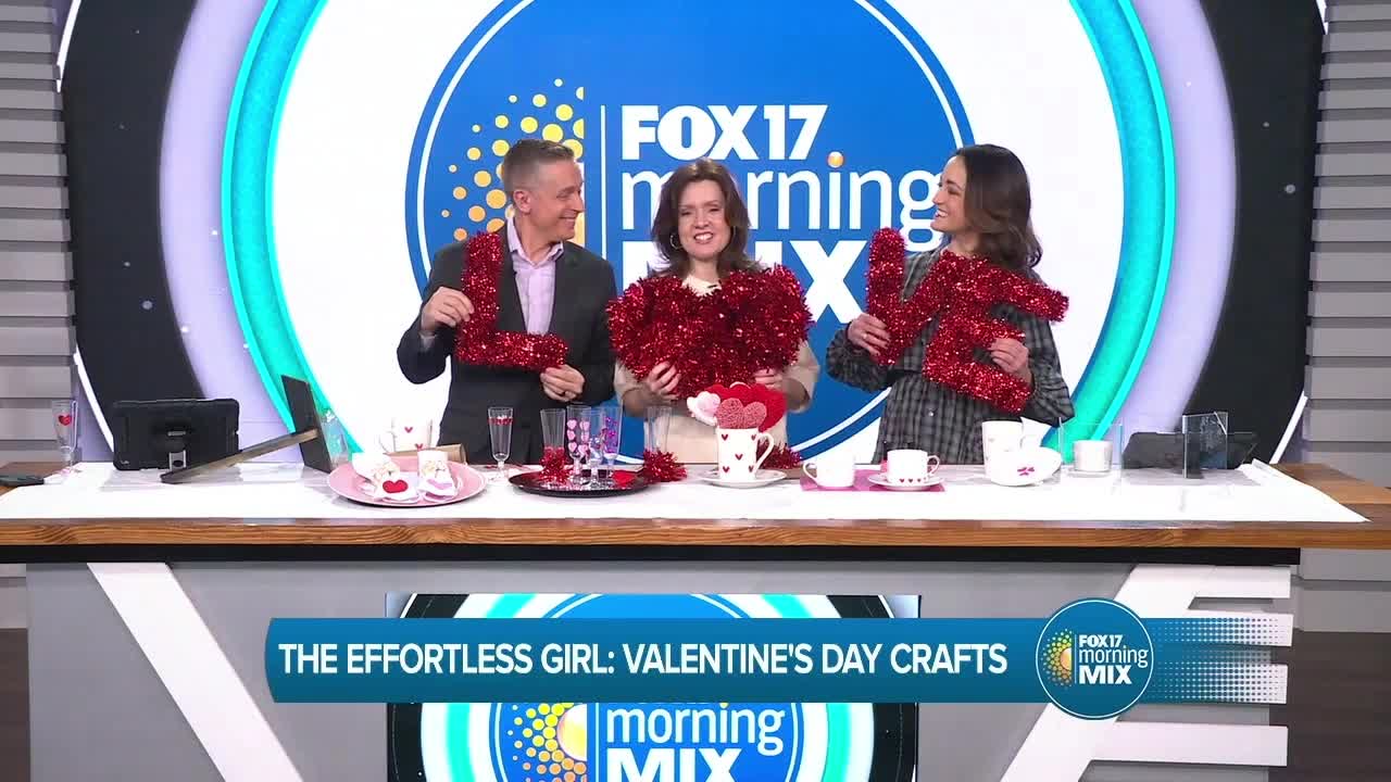 Julie visited the Morning Mix to share ideas for Valentine's Day, including champagne glasses, napkins and rings, letters, mugs, and plates!