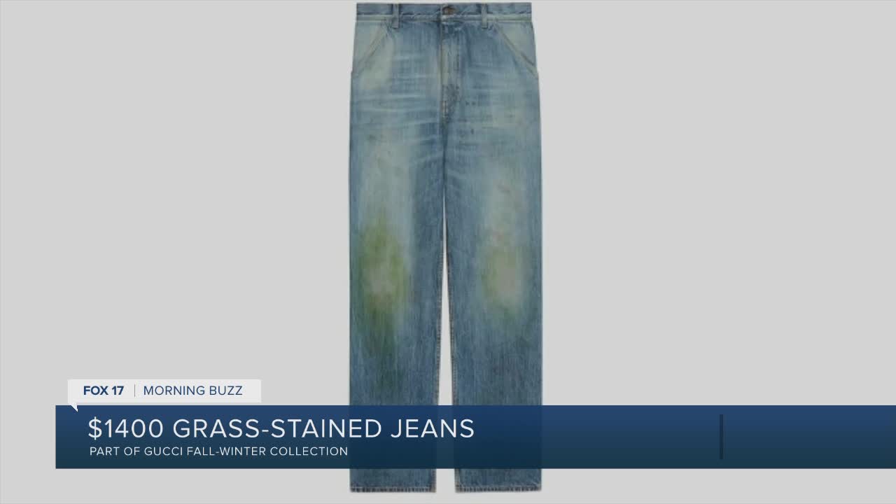 5. Gucci is going lawn mower chic. The Italian luxury fashion brand unveiled a new denim pant for men that are stained around the knee area, to appear as if the wearer has just rolled in some freshly mowed grass.