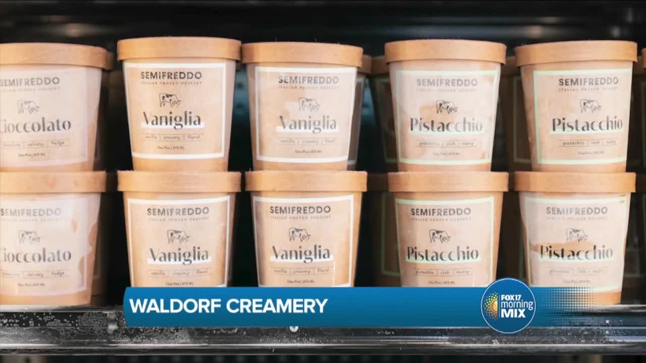 Semifreddo is a partially frozen Italian dessert that is similar to ice cream, but with a mousse-like texture. It is also the name of Grand Rapids-based Semifreddo, which is undergoing a rebrand as "Waldorf Creamery".