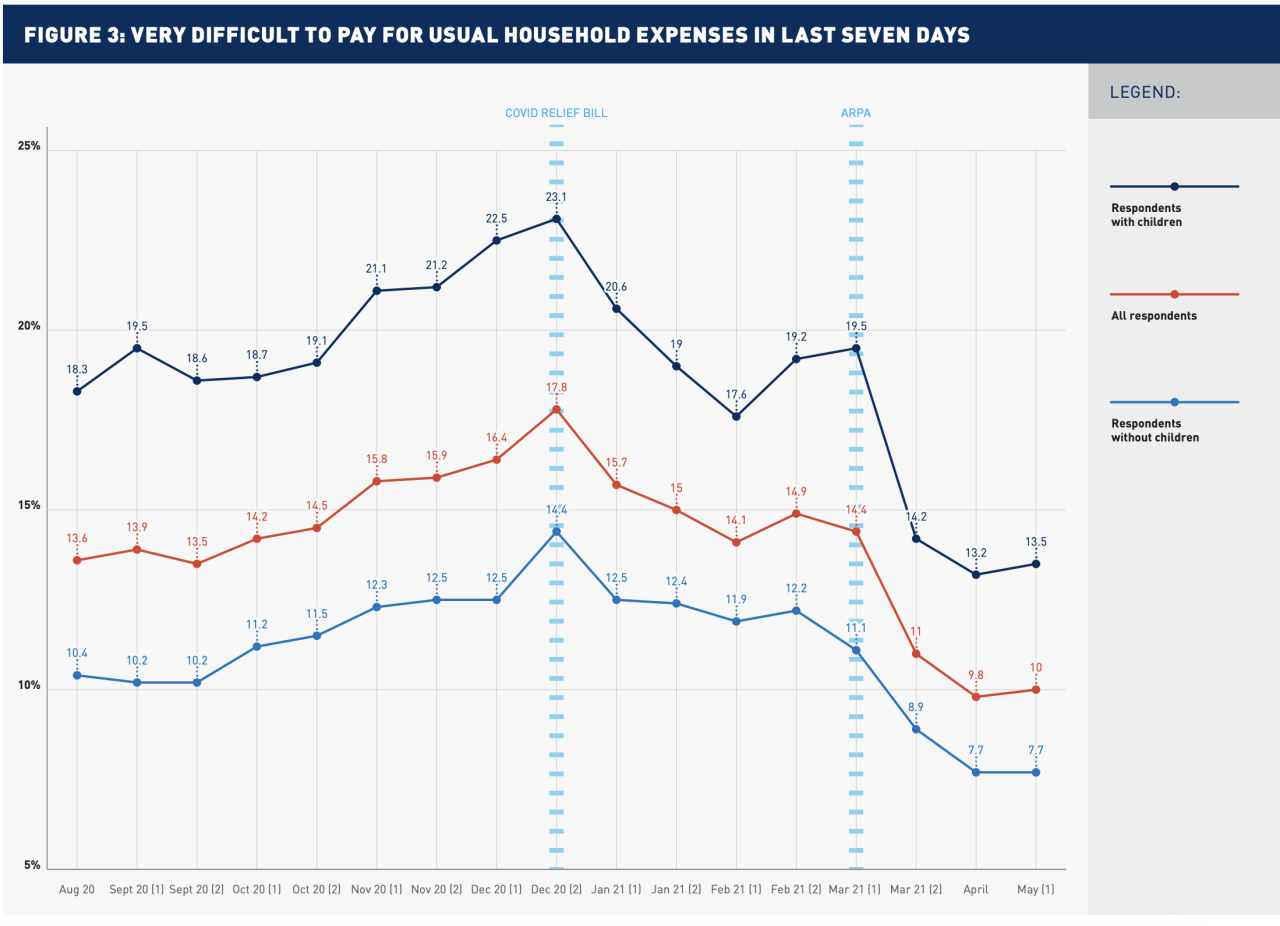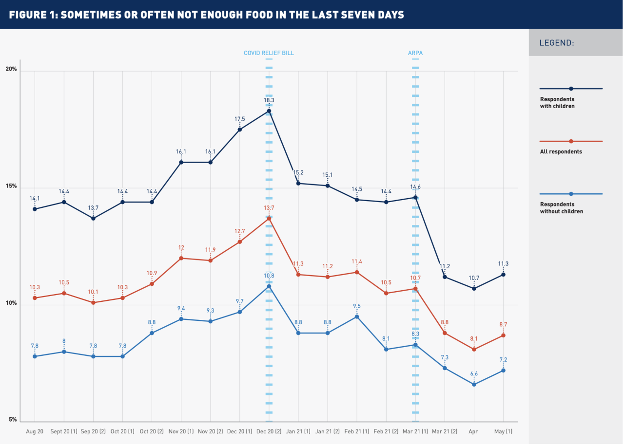 According to the study, from December 2020 to April 2021, food insufficiency fell by more than 40%, financial instability fell by 45% and adverse mental health symptoms fell by 20%.