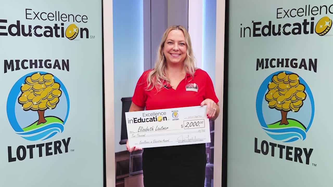 Elizabeth Lautner from Courtade Elementary has received a $2,000 check from the Michigan Lottery.