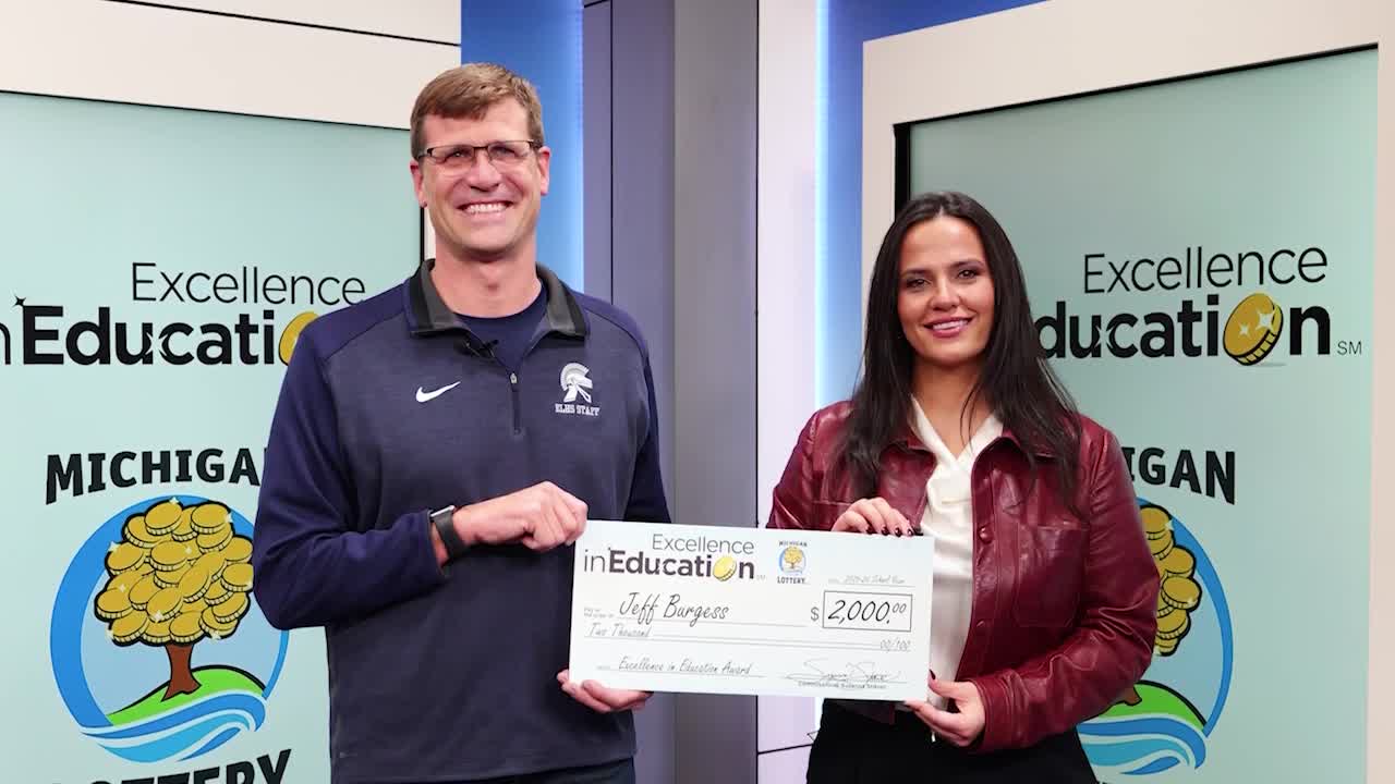 Jeff Burgess from East Lansing High School has received a $2,000 check from the Michigan Lottery.