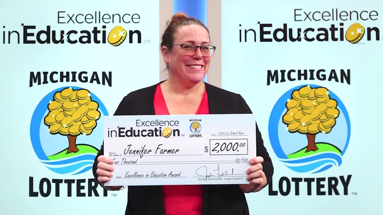 Jennifer from Big Jackson Public School has received a $2,000 check from the Michigan Lottery.