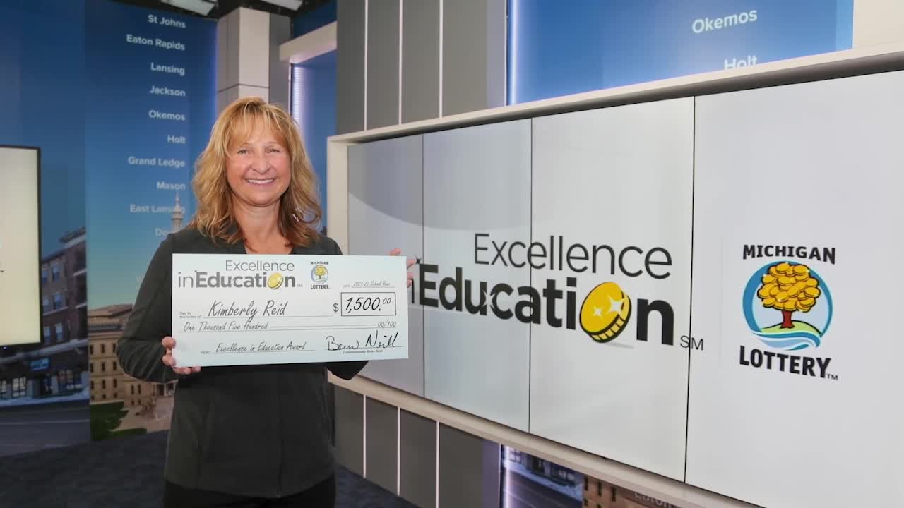 Kim has received a $1,500 check from the Michigan Lottery, and her class at Bullock Creek Elementary will receive a $500 grant.
