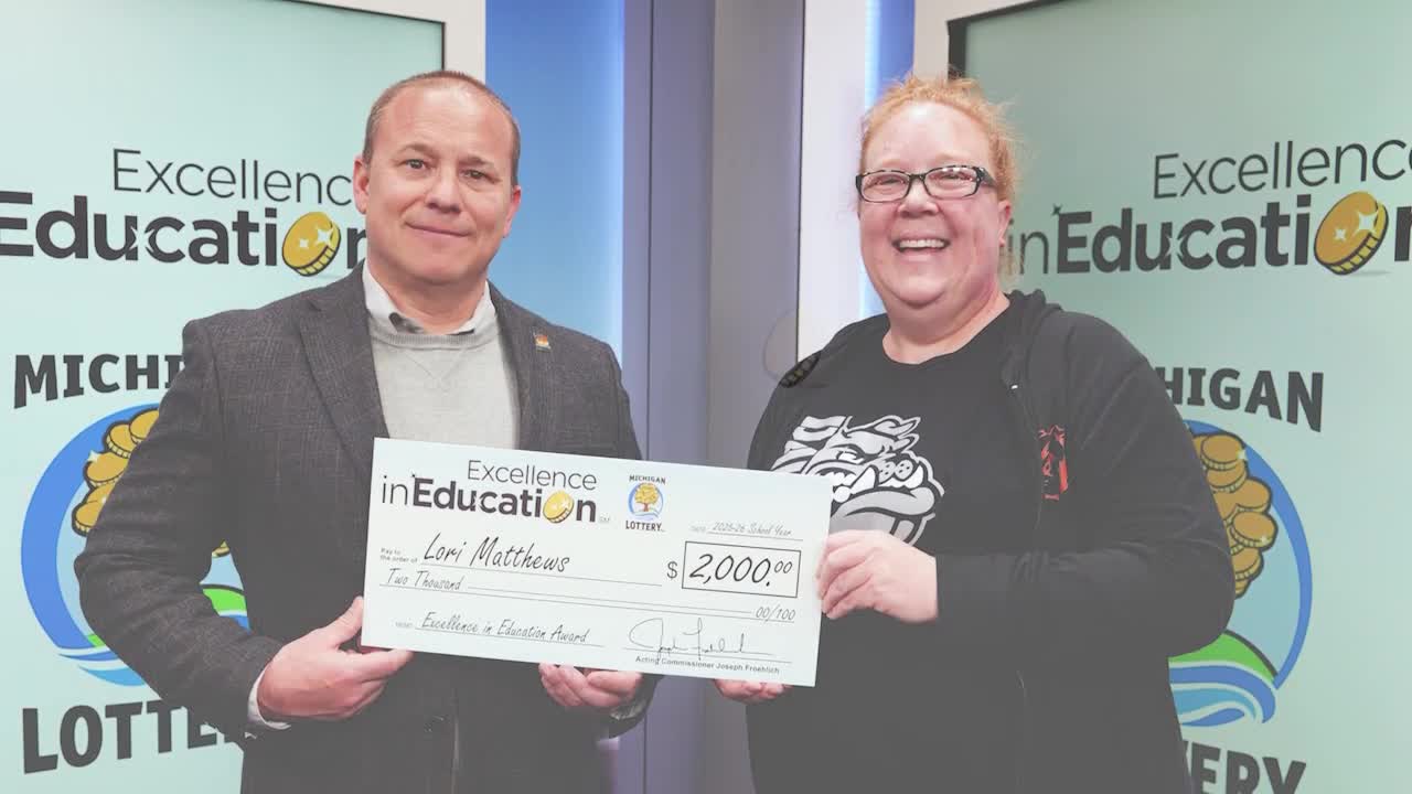 Lori Matthews from Summerfield Junior Senior High School has received a $2,000 check from the Michigan Lottery.