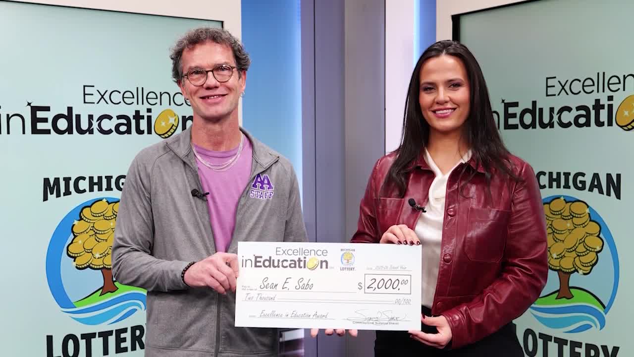 Sean Sabo from Pioneer High School has received a $2,000 check from the Michigan Lottery.