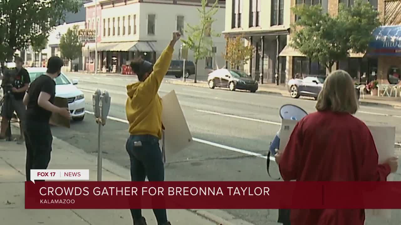 KALAMAZOO, Mich. — Protestors in Kalamazoo are demanding justice for Breonna Taylor and raising awareness about changes they want to see locally at the Kalamazoo Department of Public Safety.