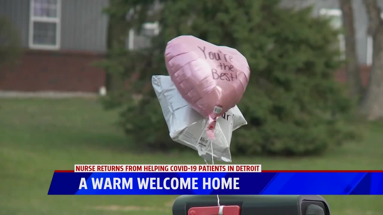 MIDDLEVILLE, Mich. — A nurse who volunteered to work in the Detroit-area, caring for COVID-19 patients, returned home to Middleville with a warm welcome.