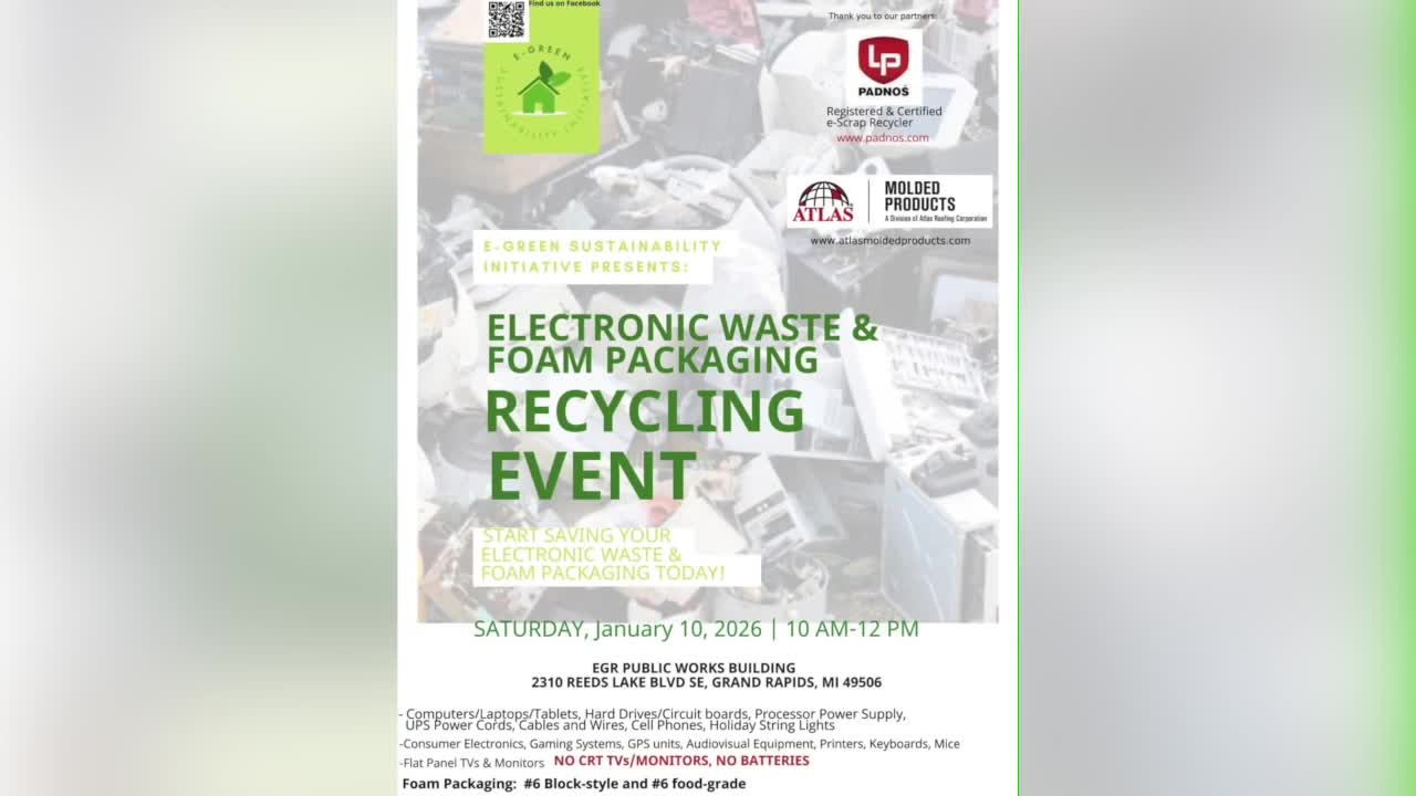 EAST GRAND RAPIDS, Mich. — Neighbors looking to dispose of electronics can take advantage of a free recycling event January 10 in East Grand Rapids.