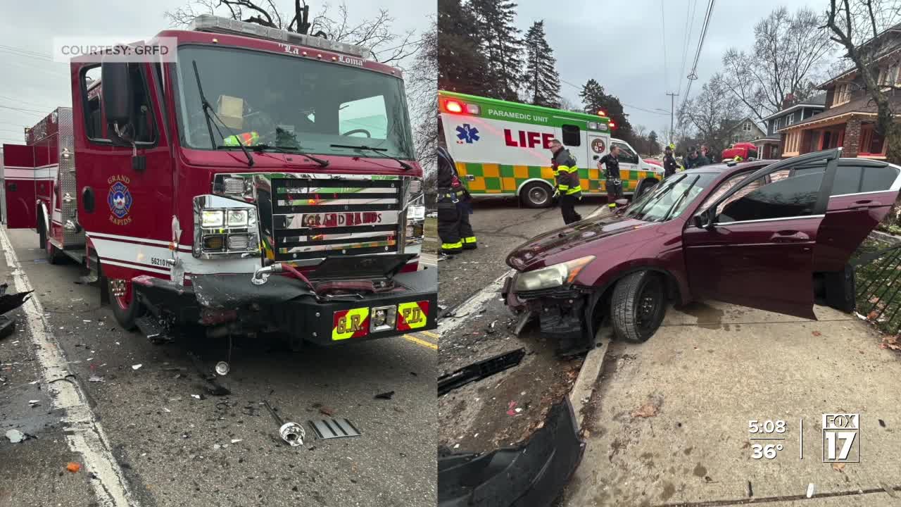 Three hurt after car collides with Grand Rapids fire engine, police say