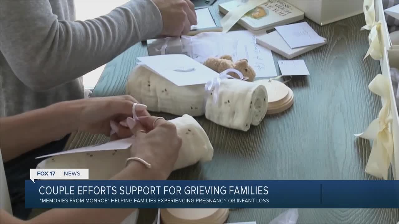 Last December, the Grand Rapids couple started “Memories from Monroe,” which is named after their stillborn daughter and provides memory boxes to hospitals for grieving families suffering from pregnancy and infant loss.