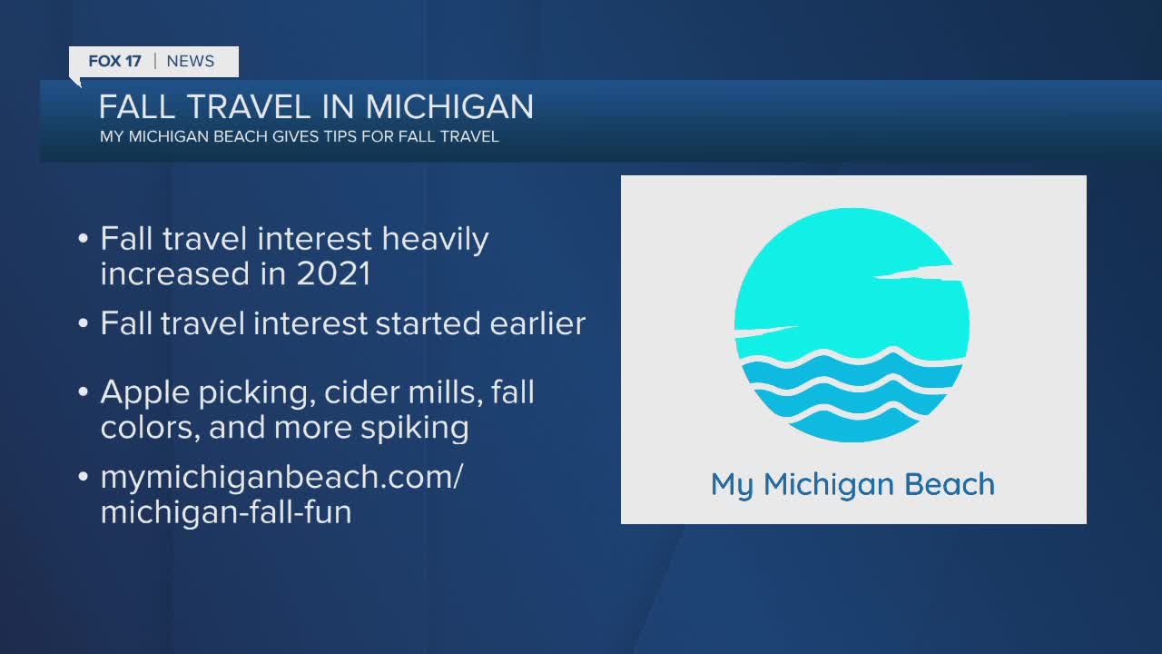 Jill Halpin, Chief Beach Officer for My Michigan Beach, says they've seen a record number of travelers seeking information on fall travel around the state, almost a 200% increase from last year. She also says that people have been looking into fall travel earlier, as early as July.