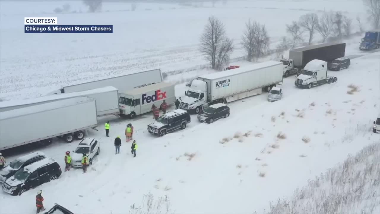 The chain-reaction crash involved nearly 100 vehicles, including an estimated 30 to 40 semi-trucks. Icy roads and severely limited visibility left drivers with nowhere to go as cars and commercial vehicles collided along the stretch of freeway.