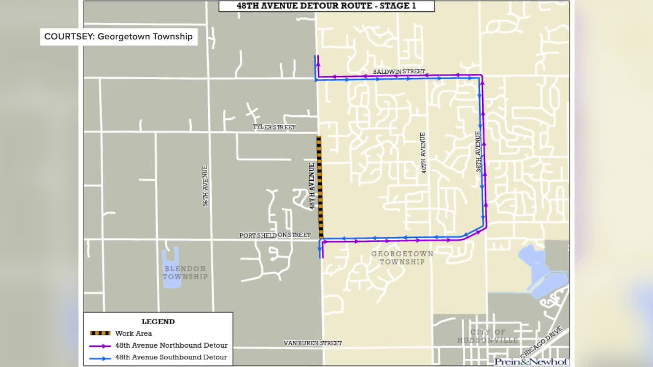 The current detour takes northbound drivers from Port Sheldon to 36th, then to Baldwin, and back onto 48th. For southbound drivers, the detour is in reverse.