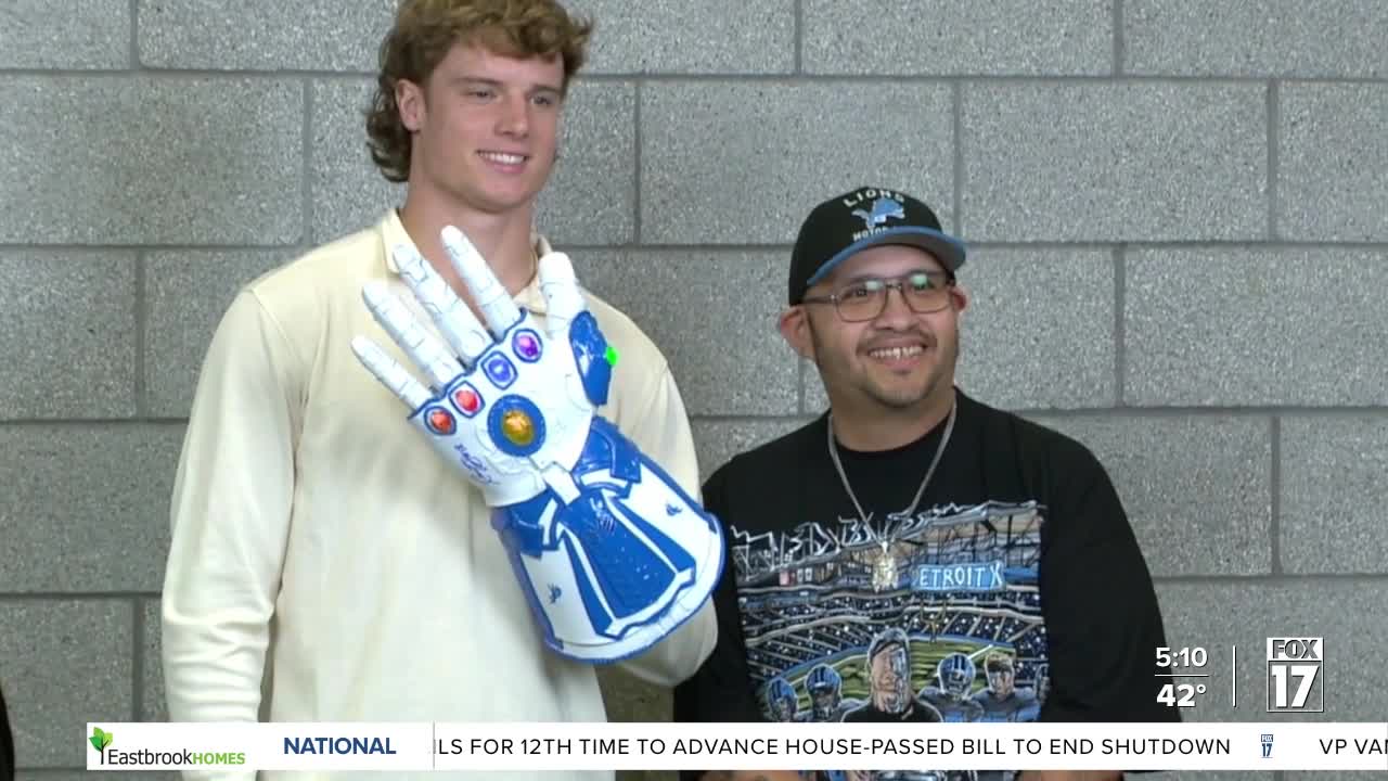 GRANDVILLE, Mich. — Rookie wide receiver Isaac TeSlaa made a hometown return to Hudsonville on Wednesday for a fan signing event during the Lions bye week.