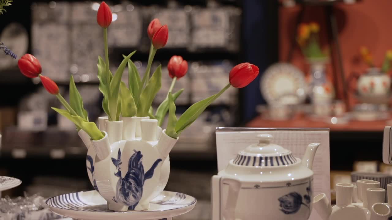 The store offers a variety of handcrafted items, from tulip vases and decorative plates to ornaments and figurines.