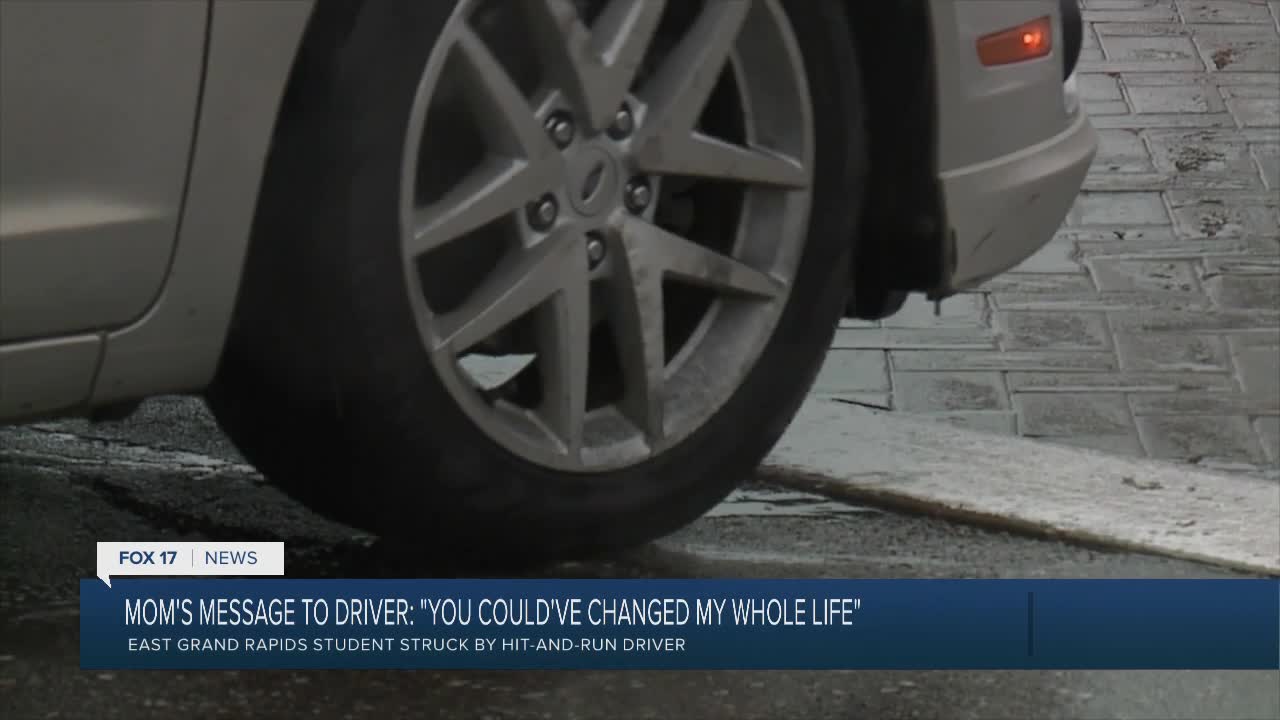 EAST GRAND RAPIDS — Police in East Grand Rapids are looking for the driver they believe hit a high schooler on a crosswalk, then sped off Friday morning.