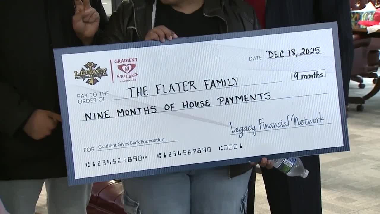The surprise gift includes nine months of housing payments and Christmas presents for all three children.
