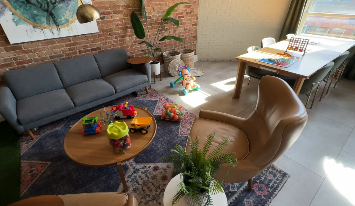"For the older children, we have several different games they can play, they can doodle on these pads, and color over there," he said as he showed us around.
