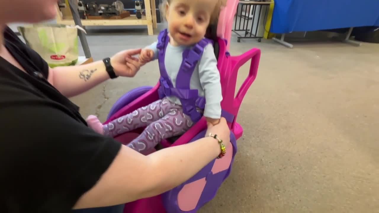 The device is technically called a toddler mobility trainer — not a wheelchair, Whitman is careful to note. "It is a trainer. It's to prepare her for when she is ready to use a wheelchair, or if a wheelchair will even be in her future."