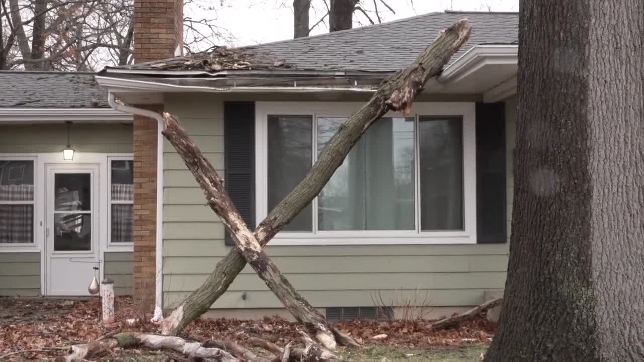 WYOMING, Mich. — A Wyoming family is cleaning up after high winds brought a tree crashing onto the roof of their Wyoming home Friday.