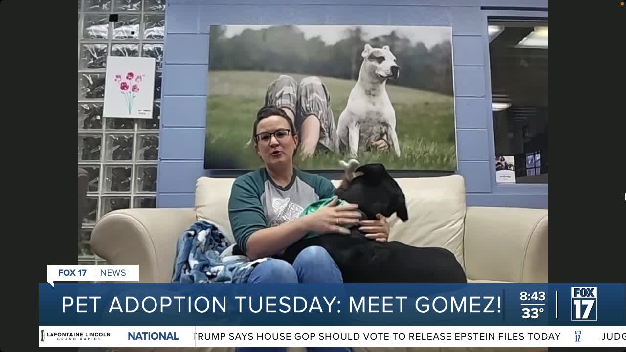The shelter says he loves playtime almost as much as he loves being told he's a good boy. Gomez also loves to cuddle.
