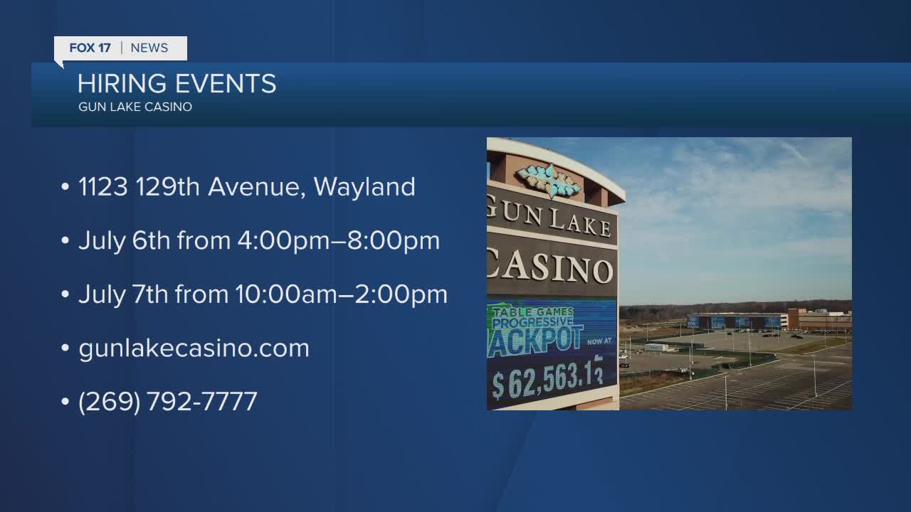 NewsMorning News Actions Facebook Tweet Email Video: Gun Lake Casino is hiring Prev Next Posted and last updated Copyright 2021 Scripps Media, Inc. All rights reserved. This material may not be published, broadcast, rewritten, or redistributed. Meet your reporter