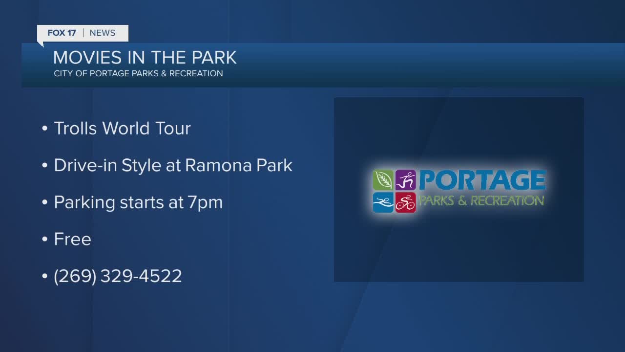 NewsMorning News Actions Facebook Tweet Email Video: Movie series at Ramona Park in Portage Prev Next By: FOX 17 News Posted and last updated Copyright 2021 Scripps Media, Inc. All rights reserved. This material may not be published, broadcast, rewritten, or redistributed. Meet your neighborhood reporter