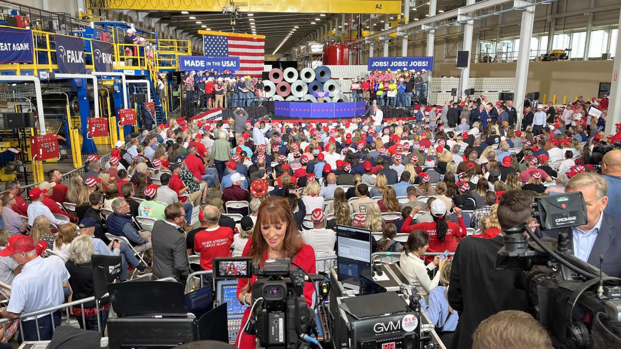 WALKER, Mich. — In a spirited rally at Falk Manufacturing in Walker, Michigan, former President Donald Trump promised to bring back the state's auto and manufacturing industries, and secure the country’s southern border.