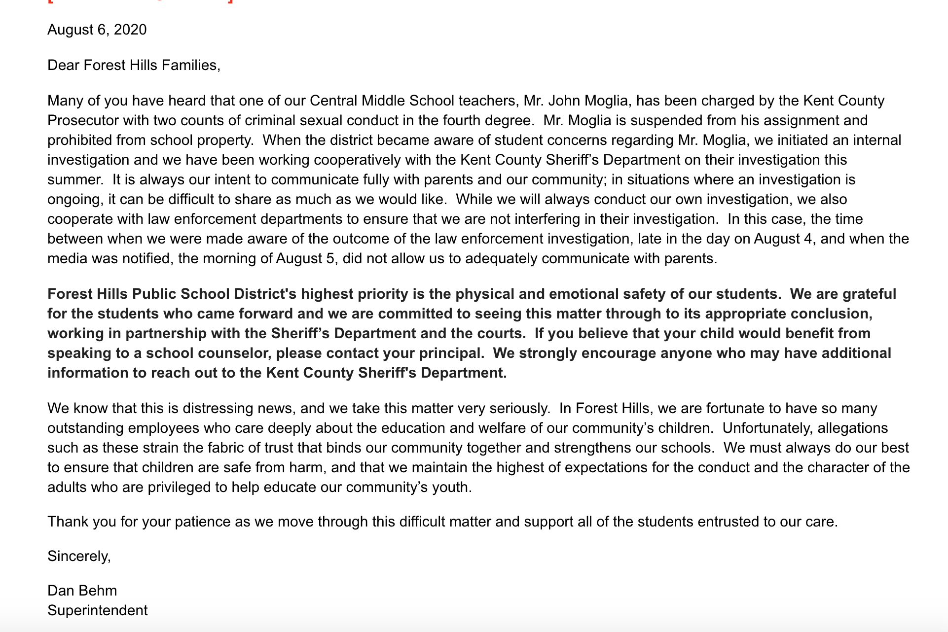 Forest Hills superintendent says they are suspending teacher accused of inappropriately touching students