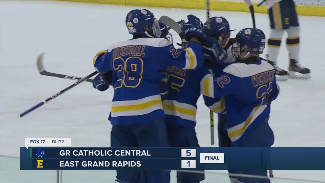 GRAND RAPIDS, Mich. — East Grand Rapids forward Finley Wielinga scored a power play goal just 3:37 into the game Saturday against Grand Rapids Catholic Central to give the Pioneers an early lead and send hundreds of teddy bears onto the ice.