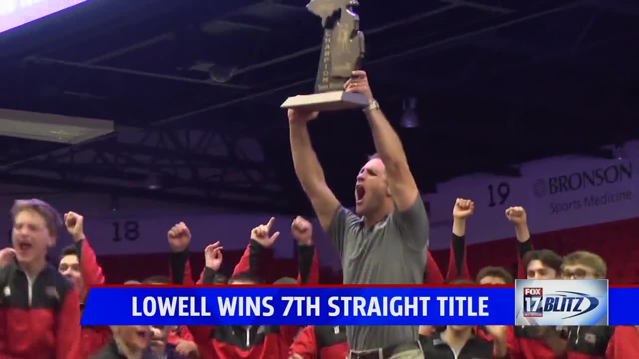KALAMAZOO, Mich. — The Lowell wrestling program dominated Gaylord, 53-4 in the Division 2 state championship match on Saturday afternoon at Wings Event Center. The win gives the Red Arrows a seventh consecutive state championship.
