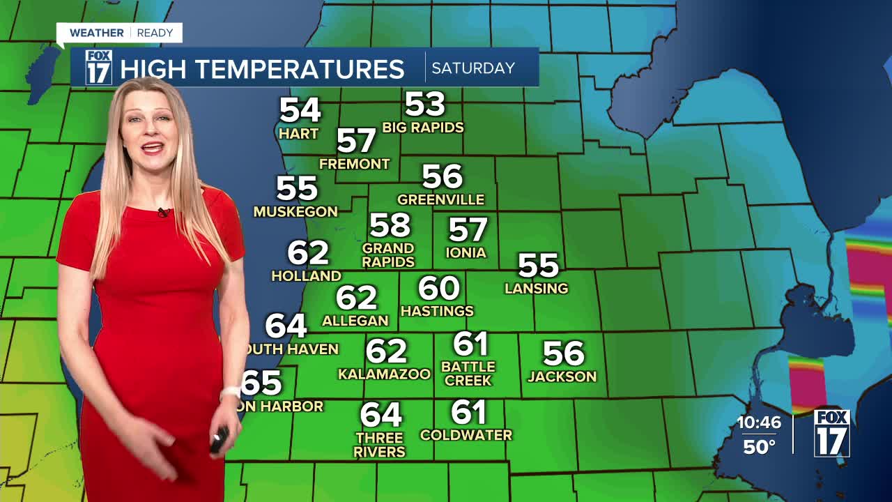 The forecast from FOX 17 Weather Ready Meteorologist Kara James: After a beautiful start to Spring today, the warmer temperatures continue through this weekend. Tonight will be mostly cloudy with lows in the low 30s, which is several degrees above average. Saturday will be a great Spring day with sun and clouds and highs in the upper 50s! A cold front Sunday brings the chance for some light rain but it will not be a washout. Amounts will be around a tenth of an inch, not enough to stress area rivers. There are no major weather systems on the horizon at this time. Early next week, mornings will be in the upper 20s and afternoons in the mid 40s to around 50, which is close to average for this time of year.