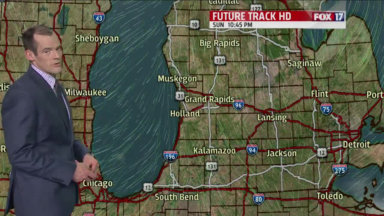 WEST MICHIGAN — The forecast from FOX 17 Meteorologist Ty Shesky: The system that bought a spring snow storm to southern sections of the FOX 17 viewing area will exit tonight, and high pressure will slide in a little ways to our south giving us some sun. Our next low pressure system, however, will continue to strengthen to our north. This pressure difference will align to give us some fairly strong winds on Saturday, and some light rain prospects on Sunday morning as that low drops in from the north.