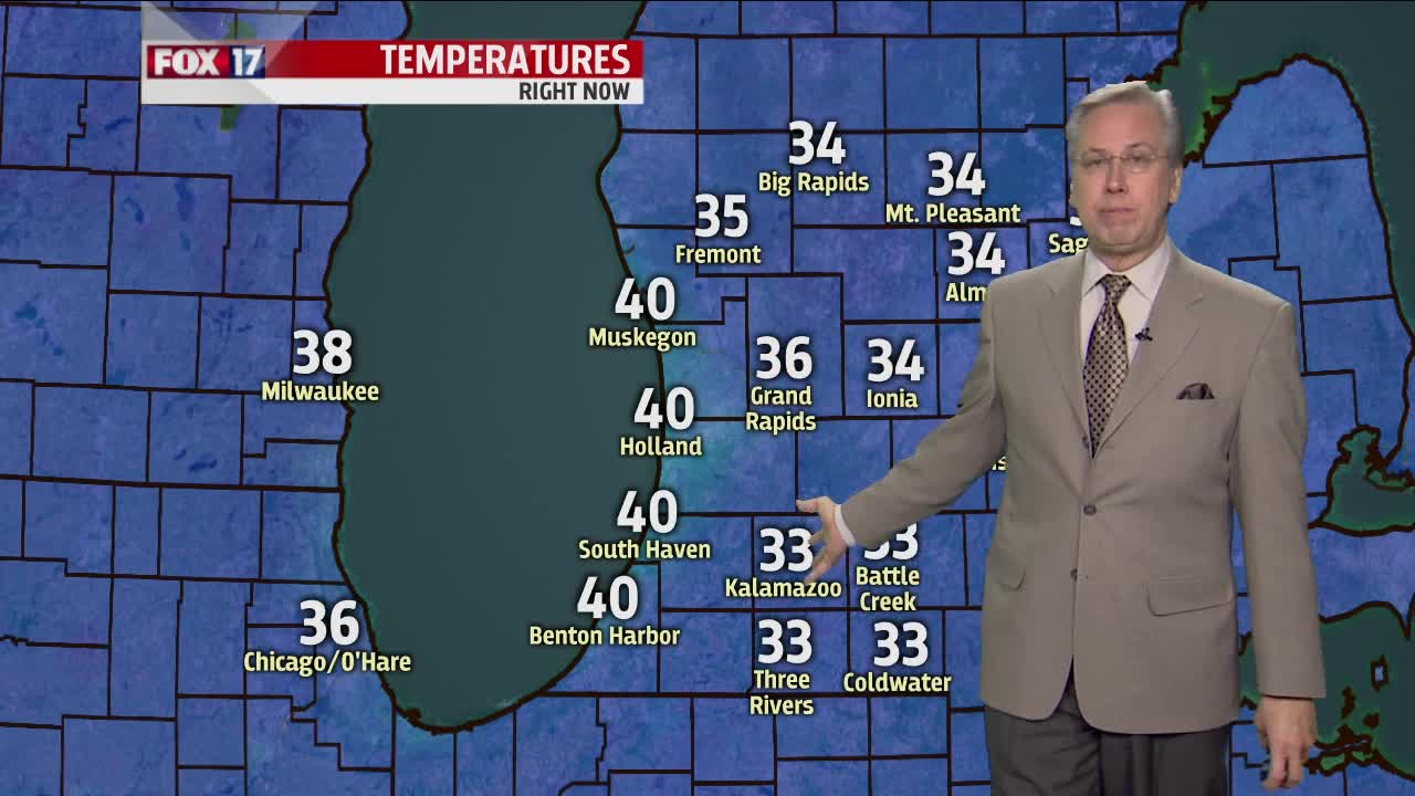GRAND RAPIDS — GRAND RAPIDS — The forecast from FOX 17 Chief Meteorologist Kevin Craig: Most of this upcoming work week will be on the quiet side. While our chances of rain/snow are not zero, they are fairly low. We have a chance for some light snow showers or flurries on Wednesday and some snow showers overnight Thursday into Friday morning. No big storms are on the horizon at this time, except for next week Sunday/Monday when a much stronger, bigger system arrives with rain/snow chances and sharply colder air by Tuesday. Unfortunately, our temperatures will be running below normal most of this week in the mid/upper 30s.