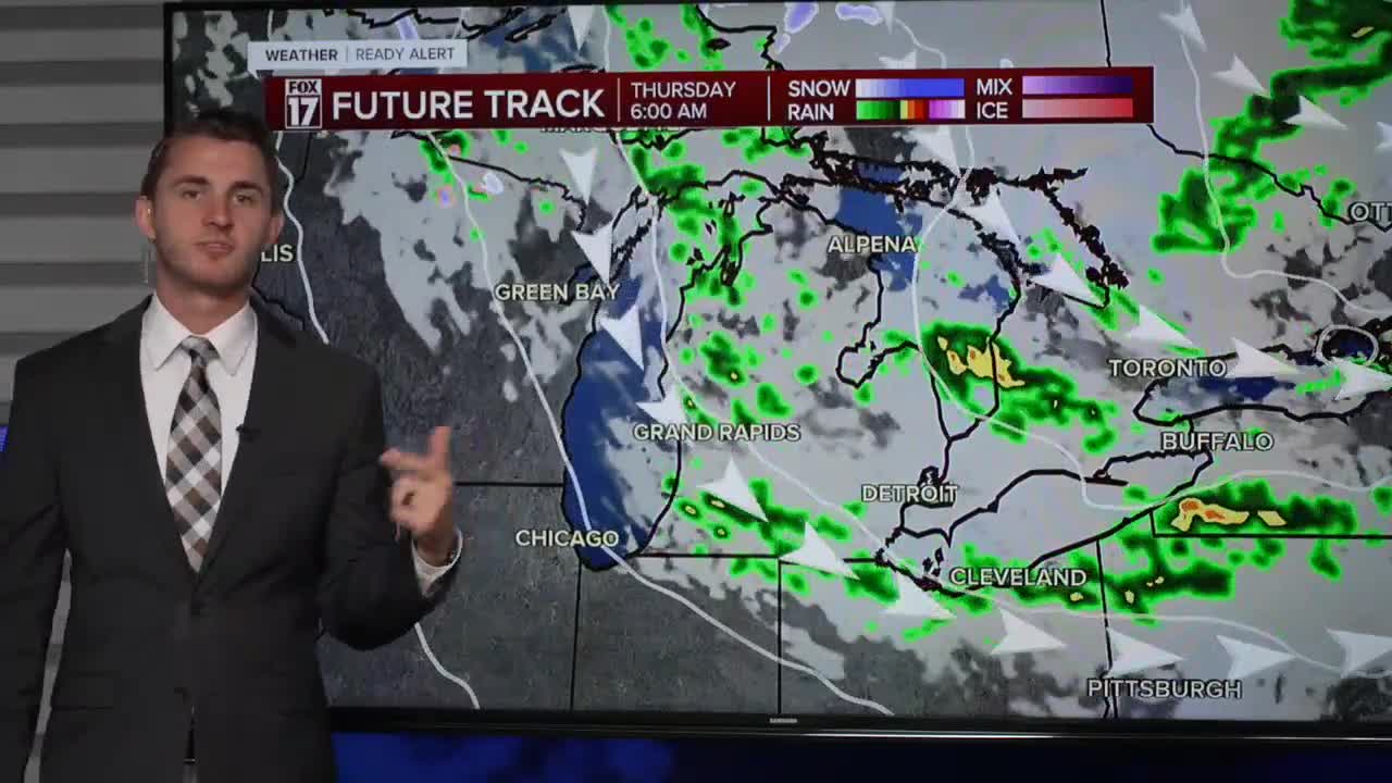 The forecast from FOX 17 Weather Ready Meteorologist Reece Cole: A FOX 17 WEATHER READY ALERT continues with more rain, wind, and cool air from the cut off low over northern Michigan. Lake effect and lake enhanced rain showers won't end until early Friday. The coldest air of the season remains until then, only reaching the upper 40s to near 50 along with a stiff 15 to 20 mph breeze. Feels like temperatures both days will be in the low/mid 40s. A strong high pressure system moves in for the weekend, keeping us clear and pleasant. Our first freeze is possible Saturday morning. Cover the plants or bring them indoors. Stay with the FOX 17 Weather Ready Team for your latest forecast updates.