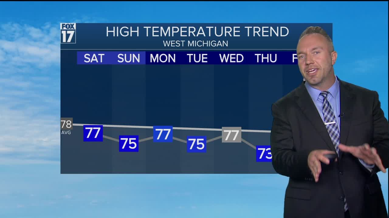 WEST MICHIGAN — WEST MICHIGAN — The forecast from FOX 17 Meteorologist Anthony Domol: Our near unlimited sunshine from Thursday sees high clouds slowly increase this evening and into Friday morning. A tranquil evening is anticipated tonight with light winds and mild temps. Friday begins with perhaps some filtered or dimmed sun but clouds increase further during the afternoon. Friday night into Saturday a weakening frontal system works its way into the region, and we may have a few light spotty showers - but at this point, we are not seeing much in the way of heavy, widespread rain. It's a tough call to say we'll be completely dry Sunday and Monday, although it does appear most of the time weather conditions will cooperate with outdoor plans for the holiday weekend. Have a pleasant, peaceful, and safe holiday Labor Day weekend.