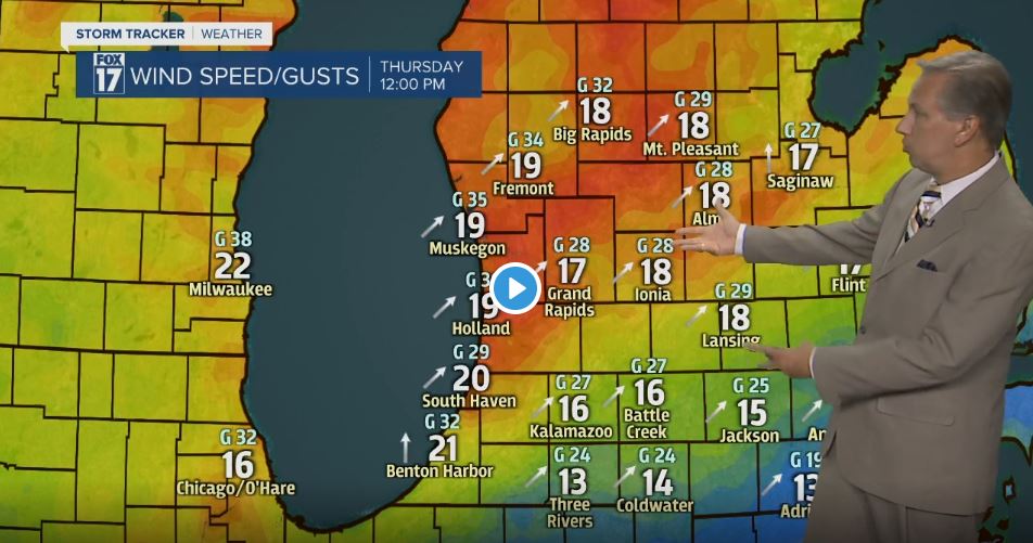 WEST MICHIGAN — The forecast from FOX 17 Chief Meteorologist Kevin Craig: An area of low pressure tacking into southern lower Canada will drag a strong cold front through the Great Lakes on Thursday. Although this front doesn't have much moisture with it, it will still bring a pretty big change in our weather on the order of some gusty winds Thursday, and much cooler temperatures on Friday. Although the frontal passage itself during the mid-afternoon hours could bring an isolated shower or storm to the area, most of us will stay dry. Our upcoming holiday Labor Day weekend looks pretty good weatherwise. Enjoy!