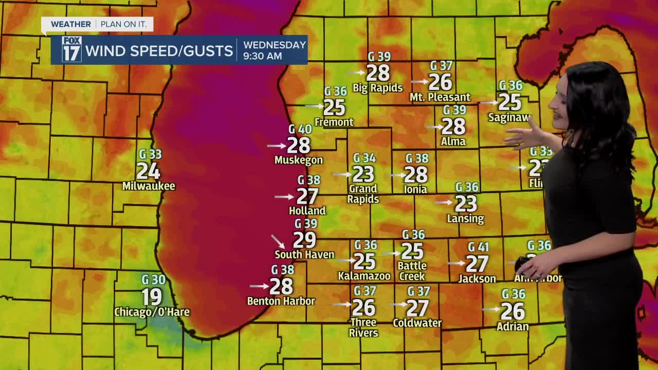 WEST MICHIGAN — The forecast from FOX 17 Meteorologist Haleigh Vaughn: Scattered rain showers continue overnight until a strong cold front shifts in from the west, transitioning rain over to lake enhanced snow showers. Any snow accumulation will be minor! Temperatures quickly tumble through the early morning hours on Wednesday, becoming sharply cooler with temperatures only in the 30s for the majority of the day. Winds will be exceptionally strong overnight and into Wednesday, with wind gusts potentially up to 45 mph. A WIND ADVISORY is in effect for all of West Michigan until 8 p.m. Wednesday. Isolated power outages will be possible, with winds shifting from the south to the west once the front passes. Factoring in the already cold temperatures and strong wind gusts, the feels-like temperatures will remain in the teens all day long! Don't forget your extra warm layers. Roadways are likely to be slick in spots, along with bridges and overpasses. Cloudy skies are in store for Thursday and Friday, with temperatures rebounding to the 40s by Friday. Another system with a transition from rain to snow and strong wind gusts is on tap for Saturday! Quickly falling temperatures are likely between Saturday and Sunday. Download the free FOX 17 Weather App for the latest forecast video.