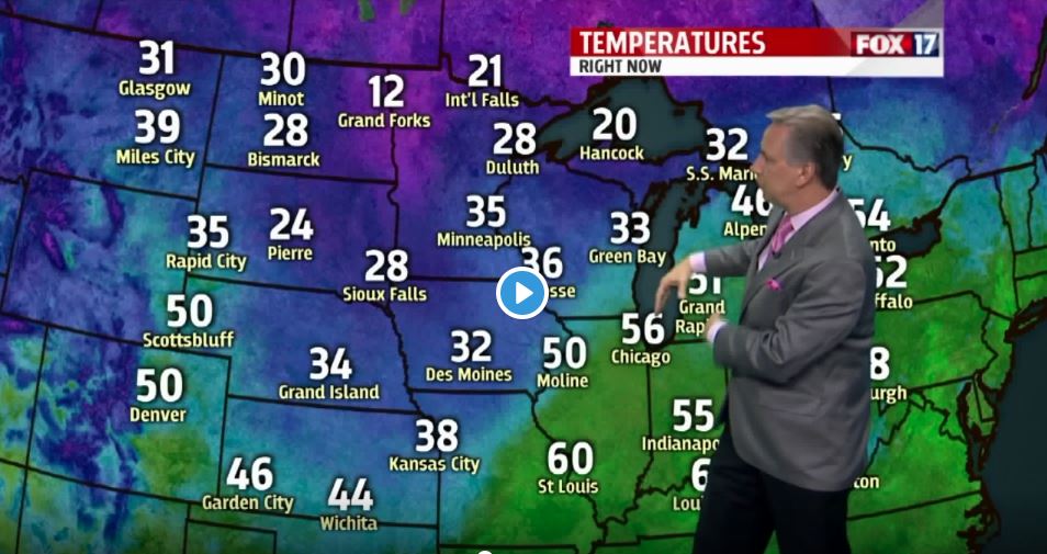 GRAND RAPIDS — The FOX 17 forecast from Chief Meteorologist Kevin Craig: Rain is likely tonight ahead of an approaching cold front. This front will pass after midnight, and temperatures will gradually drop by daybreak. A lingering rain shower is still possible early Tuesday morning, but high pressure will build in for the afternoon giving us some sunshine with a cooler northwesterly wind. Precipitation chances will again be with us for the mid to late week period as a series of disturbances move through the Great Lakes. Rain/snow are possible Wednesday, and more rain showers Thursday P.M.