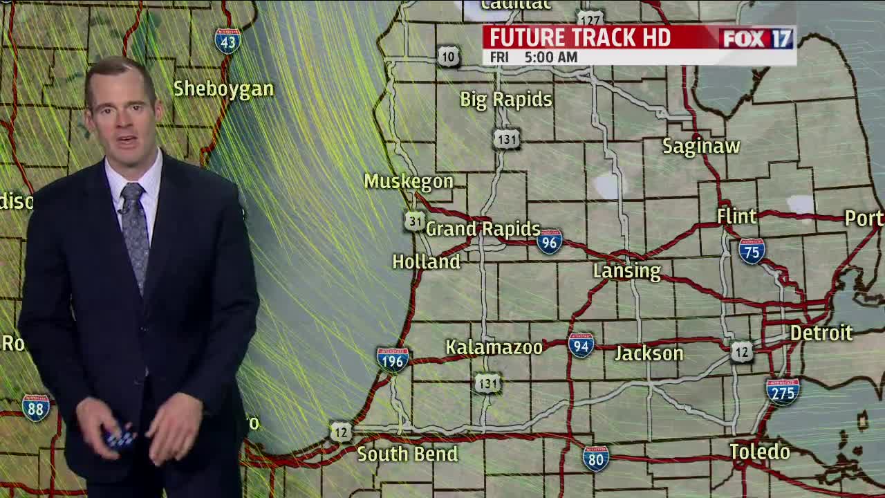 GRAND RAPIDS — The FOX 17 forecast from Meteorologist Ty Shesky: After quiet weather conditions tonight, a clipper dropping through from the north and west will bring a chance of rain and snow showers tomorrow afternoon into the evening. The precipitation will change to all snow before ending Friday morning, albeit light with little or no accumulation. High pressure will settle in Friday afternoon into Saturday, giving us quiet weather conditions.