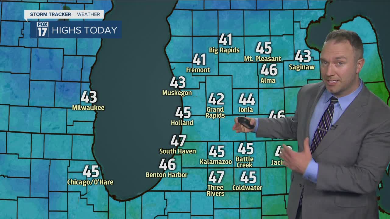 FRIDAY: Mostly sunny and pleasant with highs in the lower 40s.