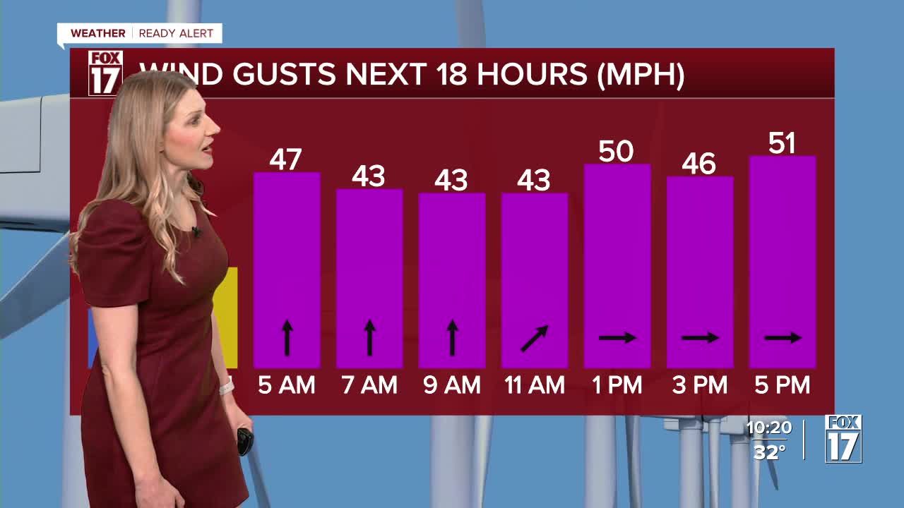 The forecast from FOX 17 Weather Ready Meteorologist Kara James: A strong Alberta Clipper system (from Canada) arrives late tonight into Friday. This will spread rain and snow across West Michigan during the early part of Friday. There may be some minor, grassy accumulations in spots in/around Grand Rapids, but a quick burst of 2" to 3" is possible across our northern counties. This system will generate very windy conditions with inland gusts of 45 to 50 mph, and gusts at the lakeshore of 55 to 60 mph. A FOX 17 WEATHER READY ALERT has been issued along with a HIGH WIND WARNING as we expect scattered power outages, difficulty driving on north/south roads, and blowing snow. Most of Saturday looks dry, but Saturday night into Sunday another system arrives. This systems bears watching as we are currently seeing rain, snow, wintry icy mix, and perhaps a thunderstorm in spots. Some models bring mostly rain and a little snow to West Michigan, while others bring more wintry weather. Any accumulation in our area would likely occur from Grand Rapids to the north. This will be a system to keep an eye on in the days to come as travel impacts could be possible Sunday. The system looks to produce very heavy snow across northern lower Michigan and north central lower Michigan. Forecast details and amounts have yet to be worked out, but suffice to say a winter storm in these areas is possible. Beyond that system we cool down even further with some lake effect snow showers possible early next week.